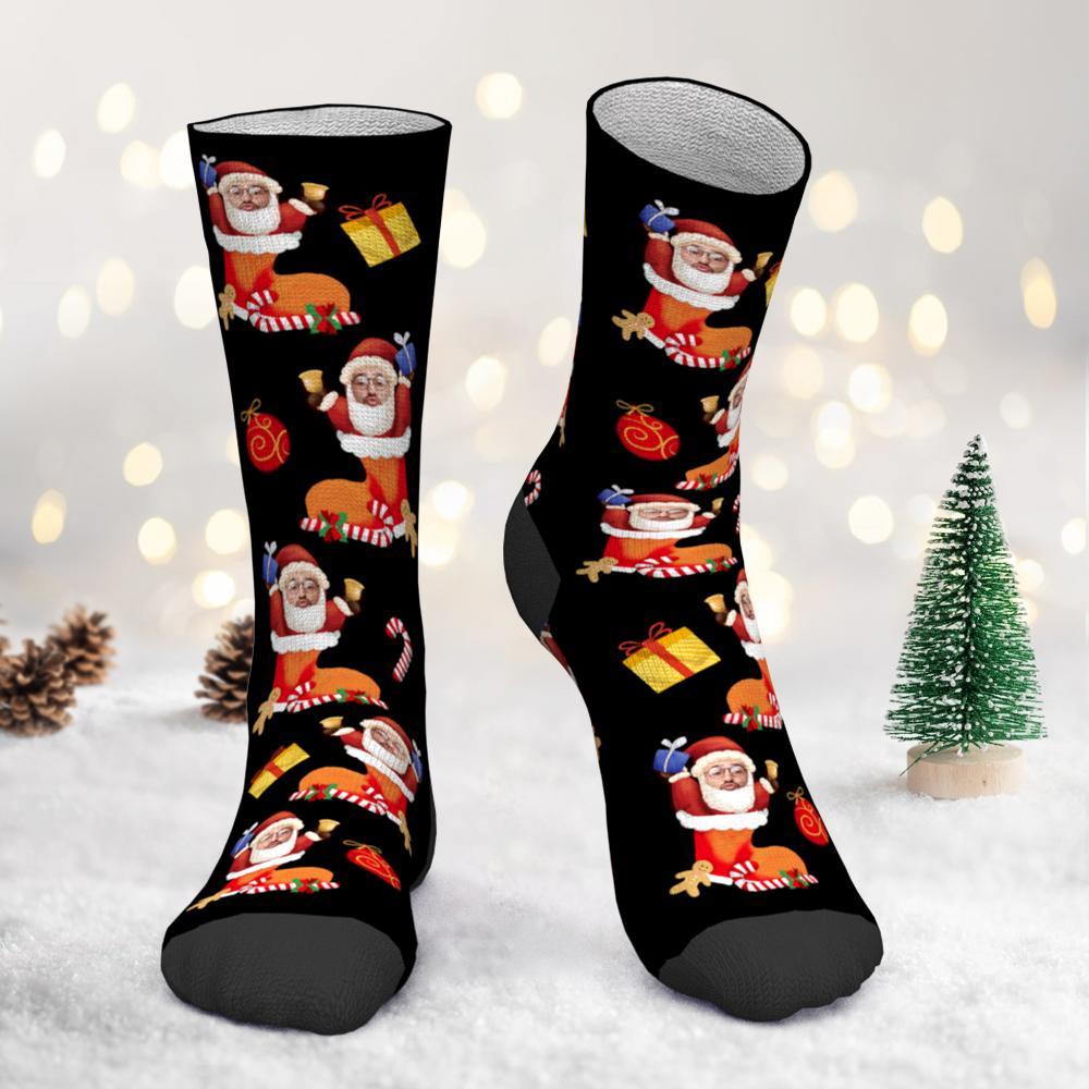 Custom Photo Christmas Socks Santa in Christmas Stocking With Your Face