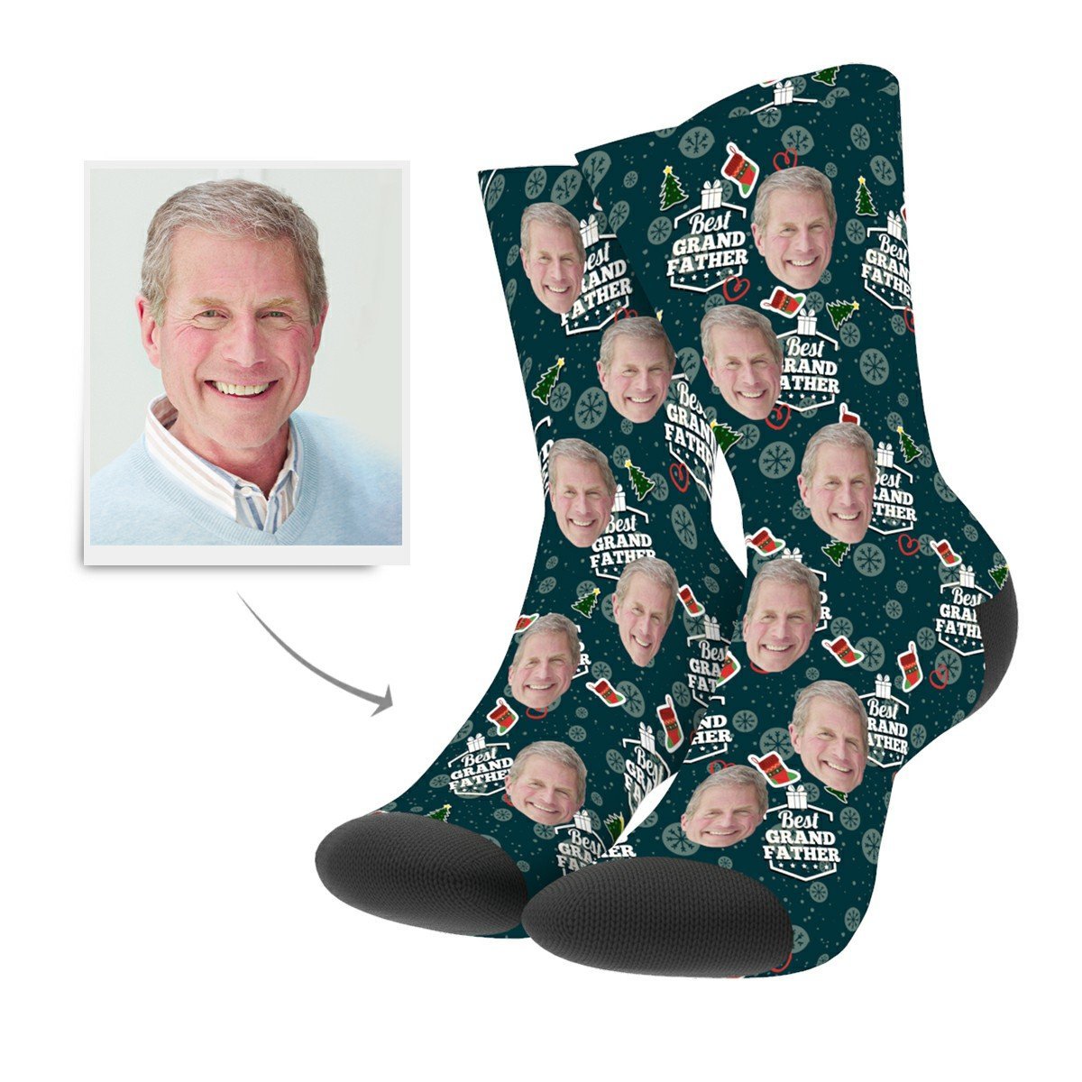 Custom Photo Socks Grandfather Face Socks For Christmas