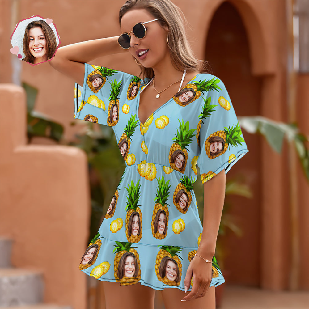 Custom Face Beach Wrap Hawaiian Style Blue Funny Pineapple Cover Ups