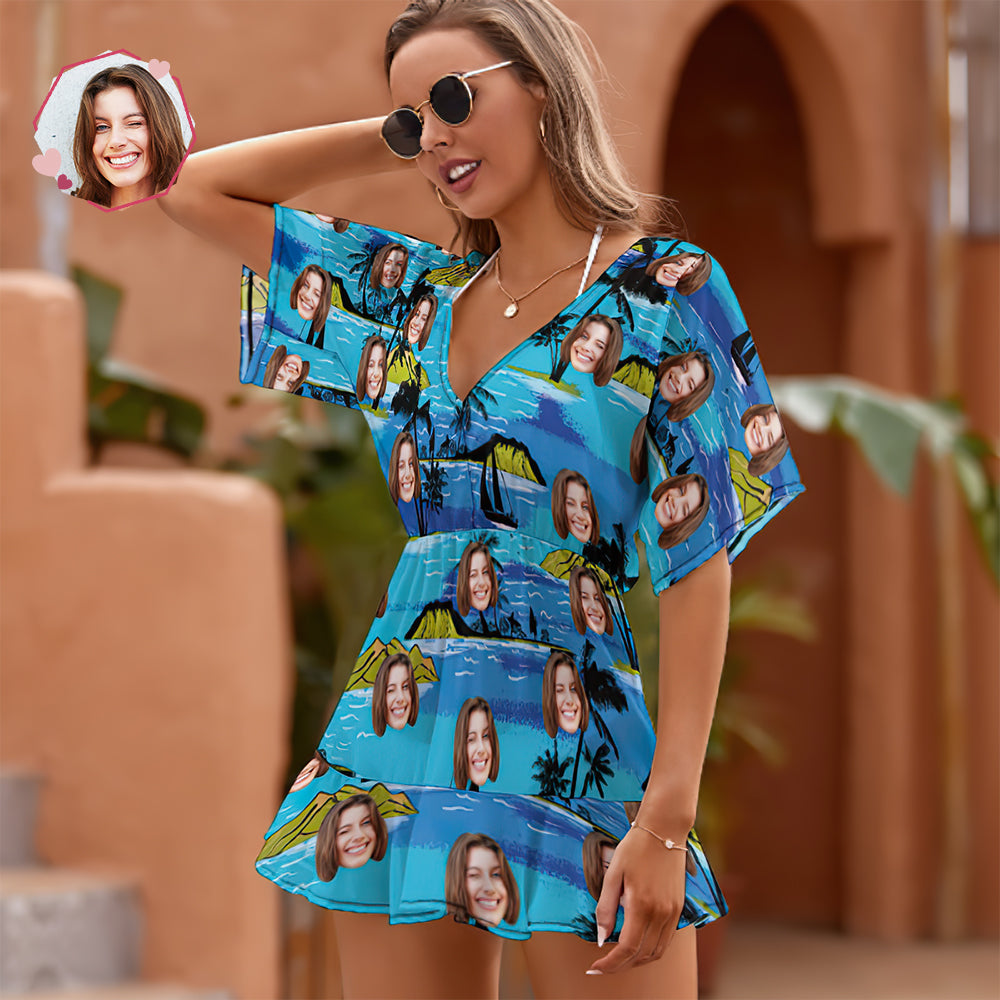 Custom Face Beach Wrap Hawaiian Style Face Mash Cover Ups