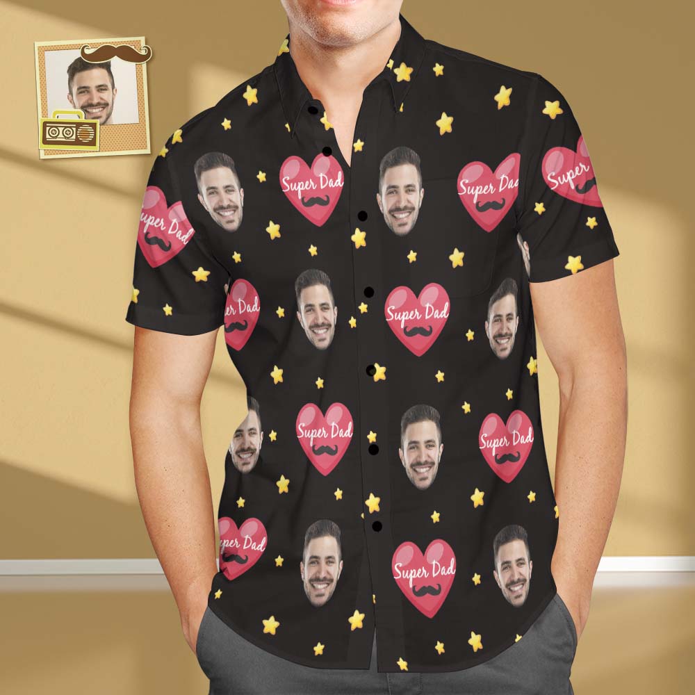 Custom Face Star Hawaiian Shirt Men's All Over Print Super Dad