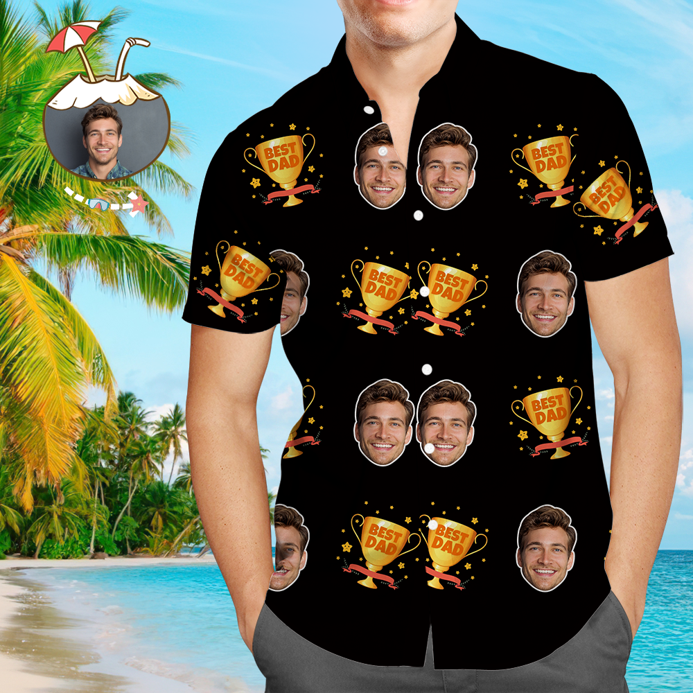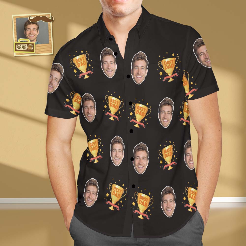 Custom Face Hawaiian Shirt Men's All Over Print Best Dad Trophy