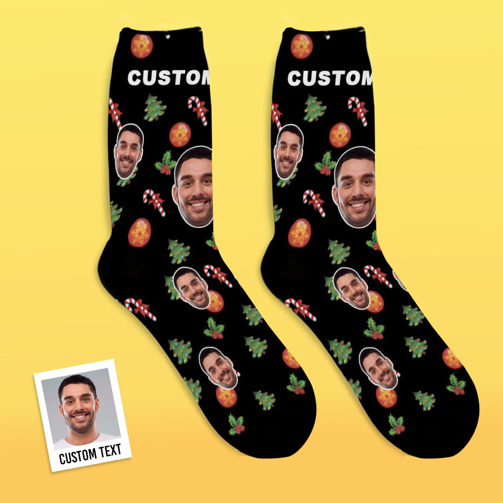 Custom Face Socks Candy Cane Christmas Socks