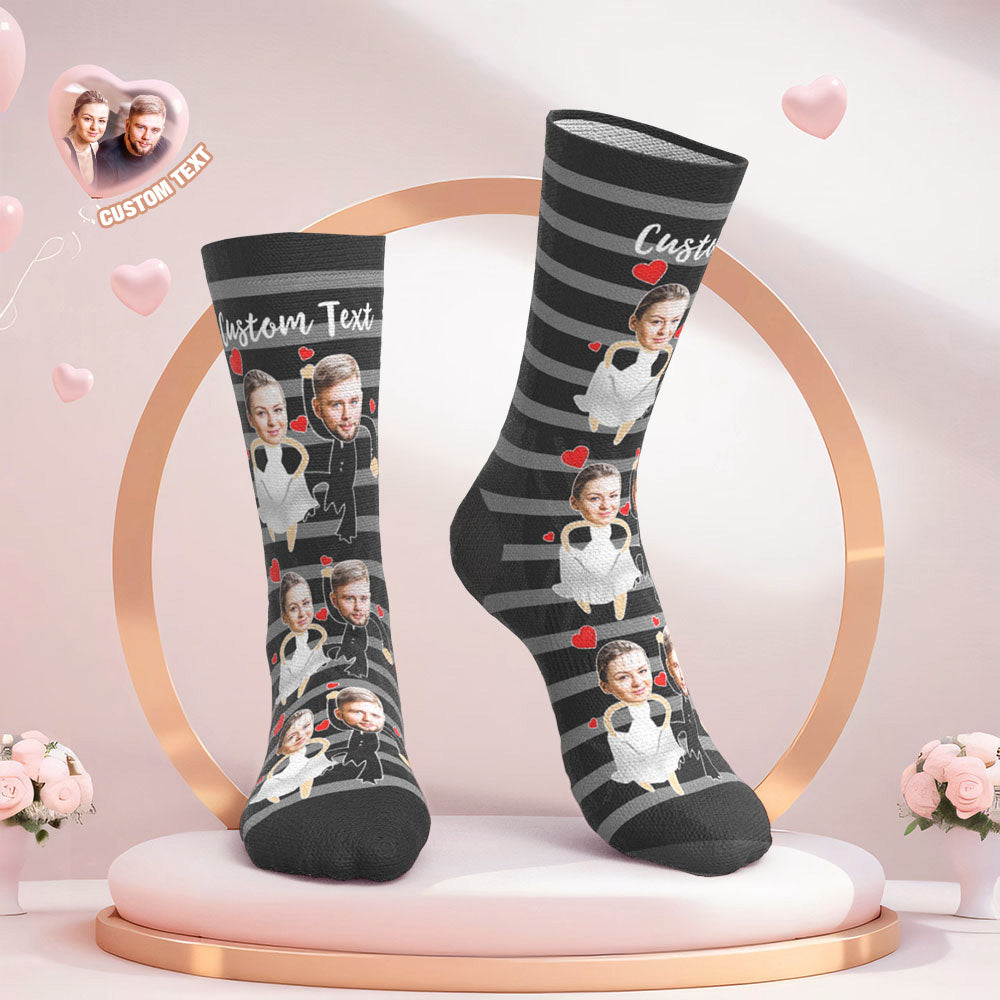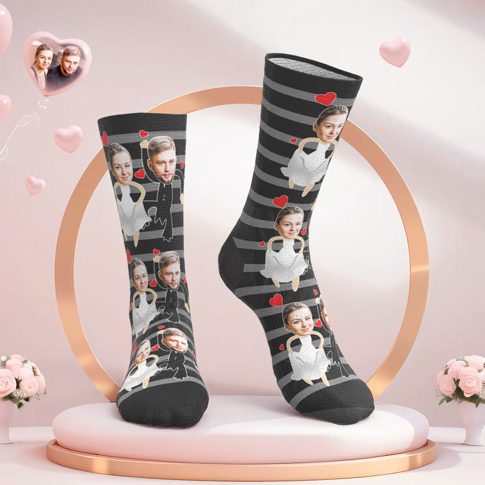Custom Face Wedding Socks for Couples Stripe Wedding Gifts