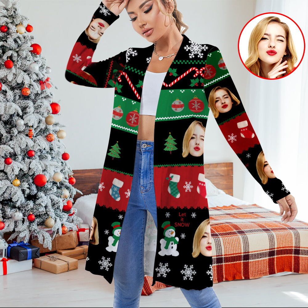Personalized Face Christmas Cardigan Women Open Front Cardigans for Christmas Gifts