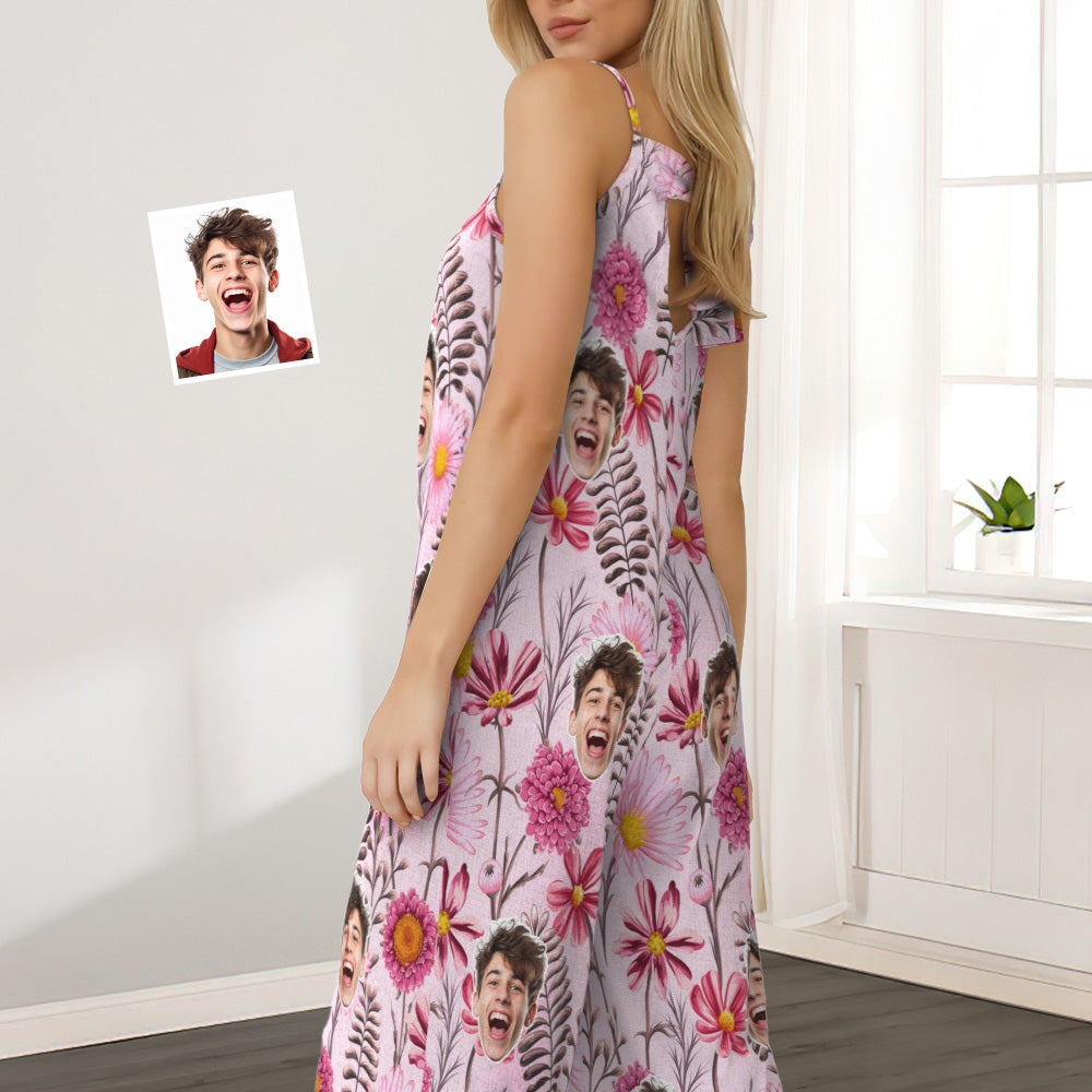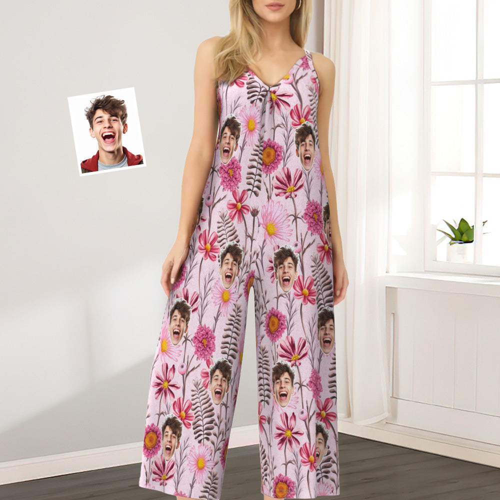 Custom Face Loose Jumpsuit With Wide Leg Pink Flowers Rompers