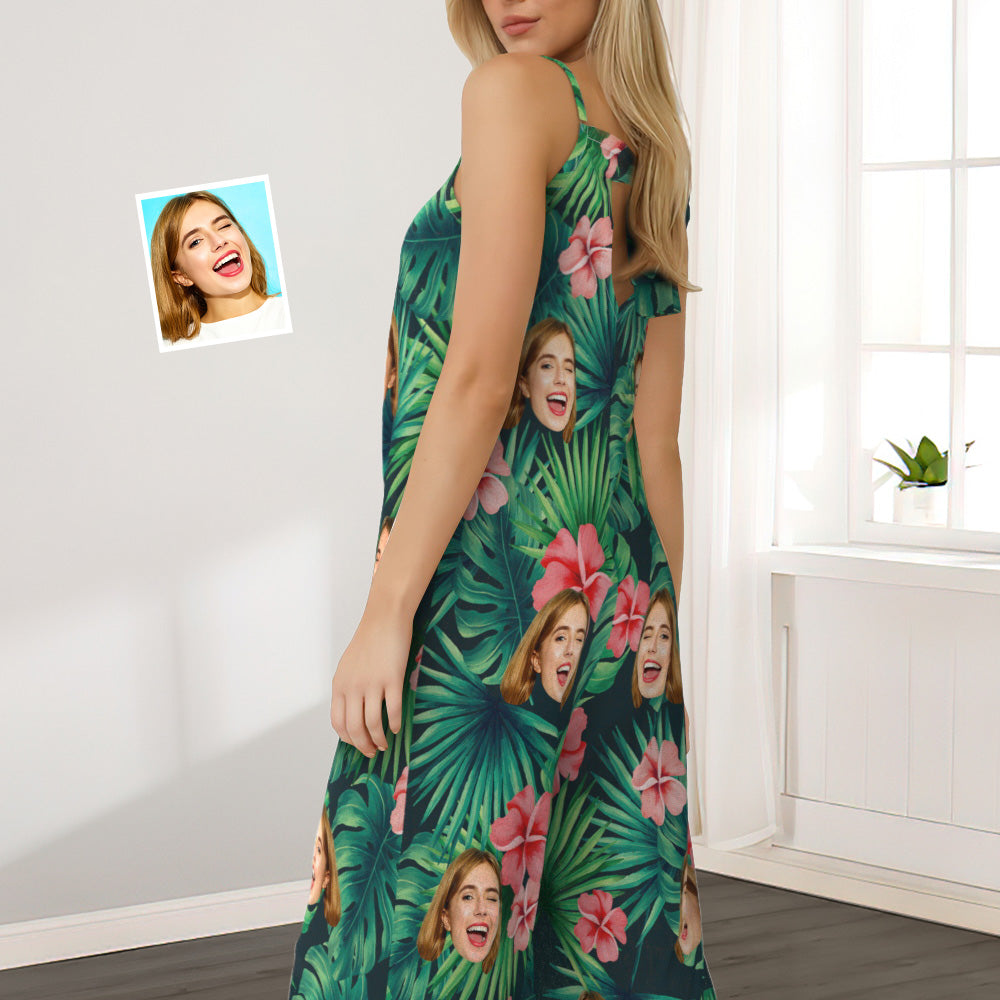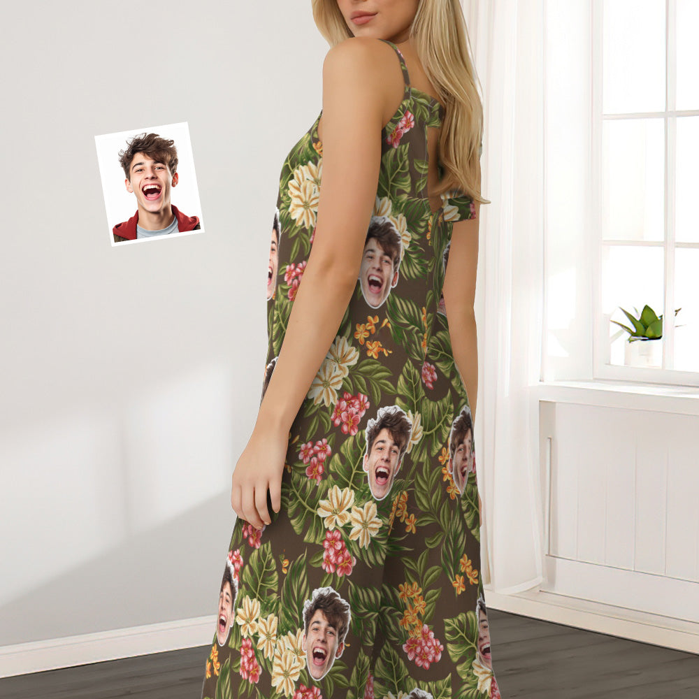 Custom Face Jumpsuit With Suspender Hawaiian Style Tropical Flowers Rompers