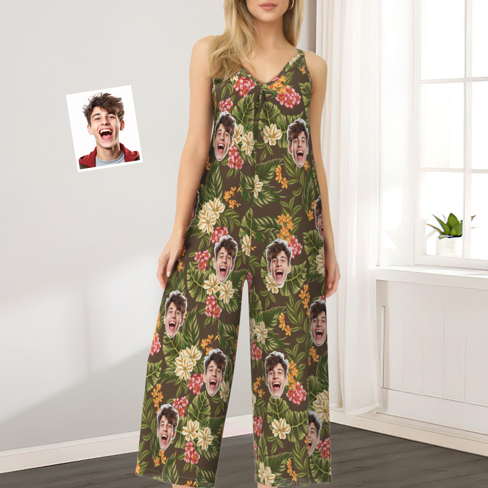 Custom Face Loose Jumpsuit With Wide Leg Face Mash Rompers