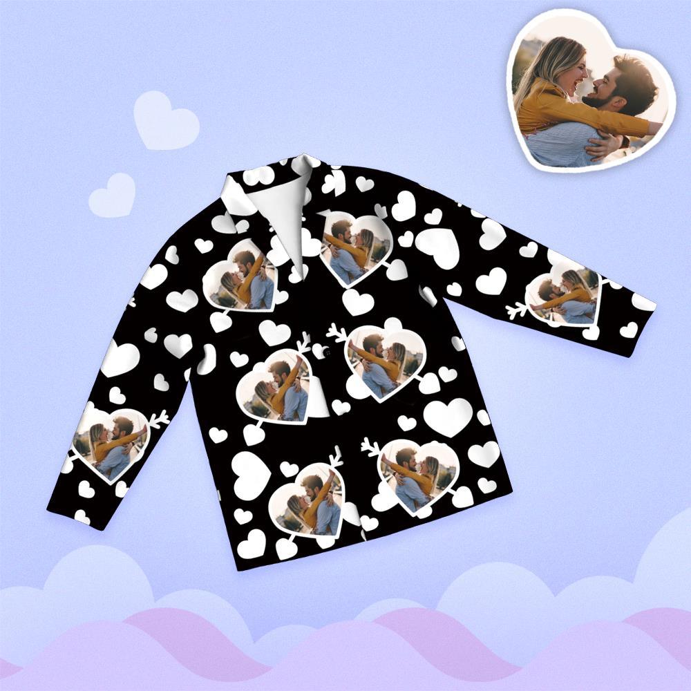 Custom Face Photo Pajamas Long Sleeve Nightwear Heart