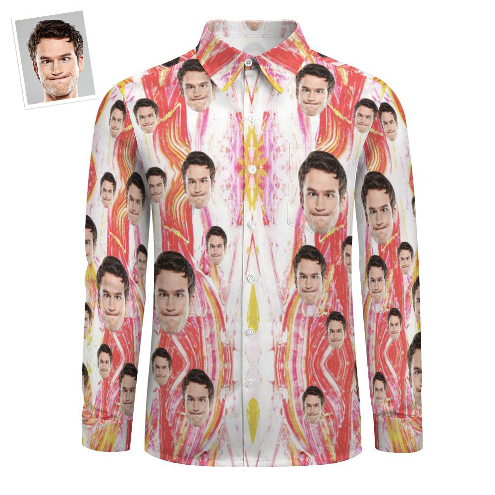 Custom Face Red All Over Print Large Long Sleeve Shirt