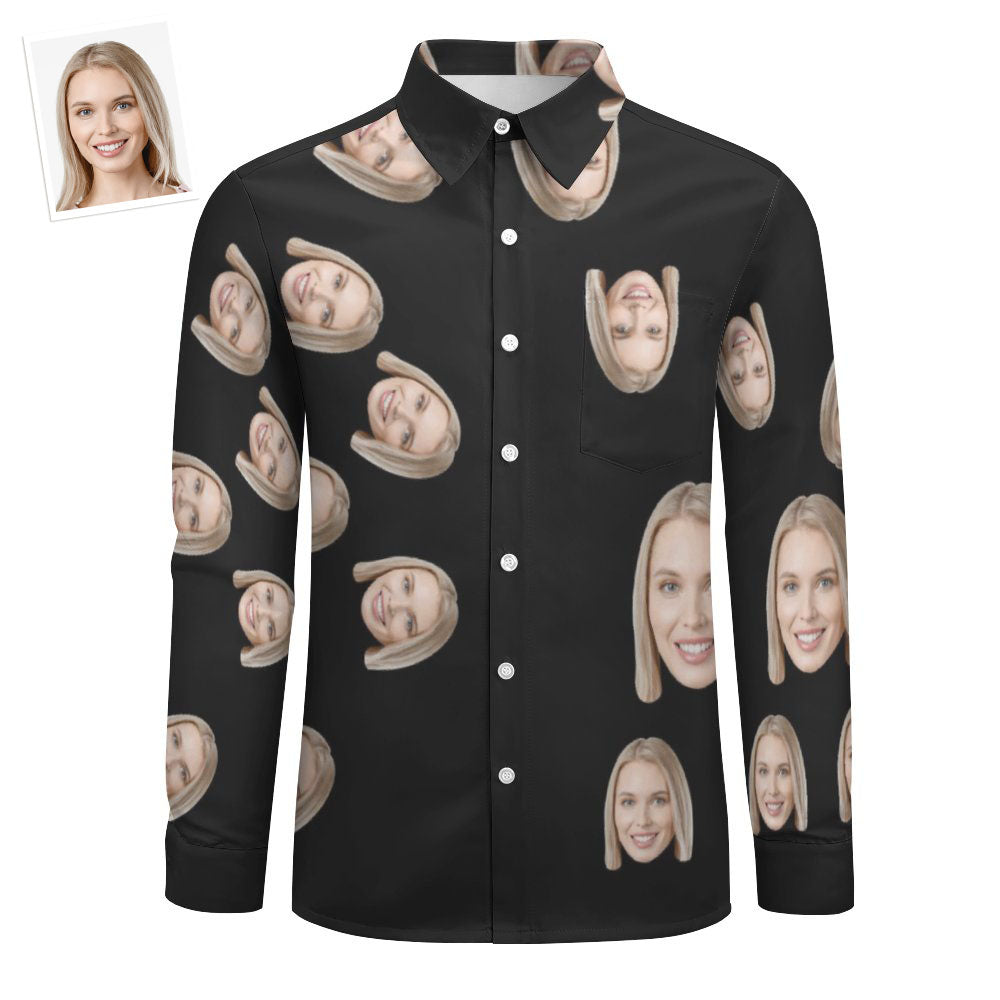 Custom Face Black All Over Print Large Long Sleeve Shirt