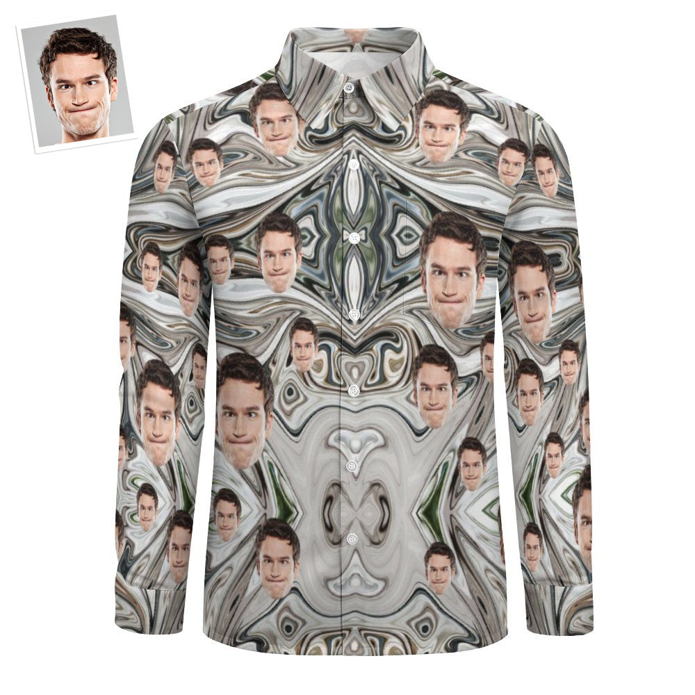 Custom Face All Over Print Large Long Sleeve Shirt Marble Ink Watercolor Texture