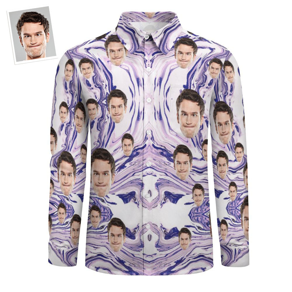 Custom Face Purple Marbling All Over Print Large Long Sleeve Shirt