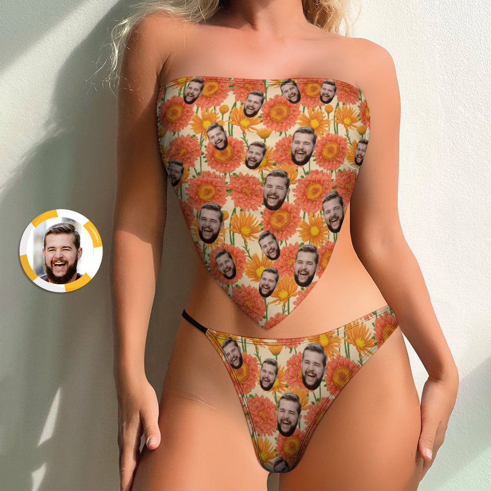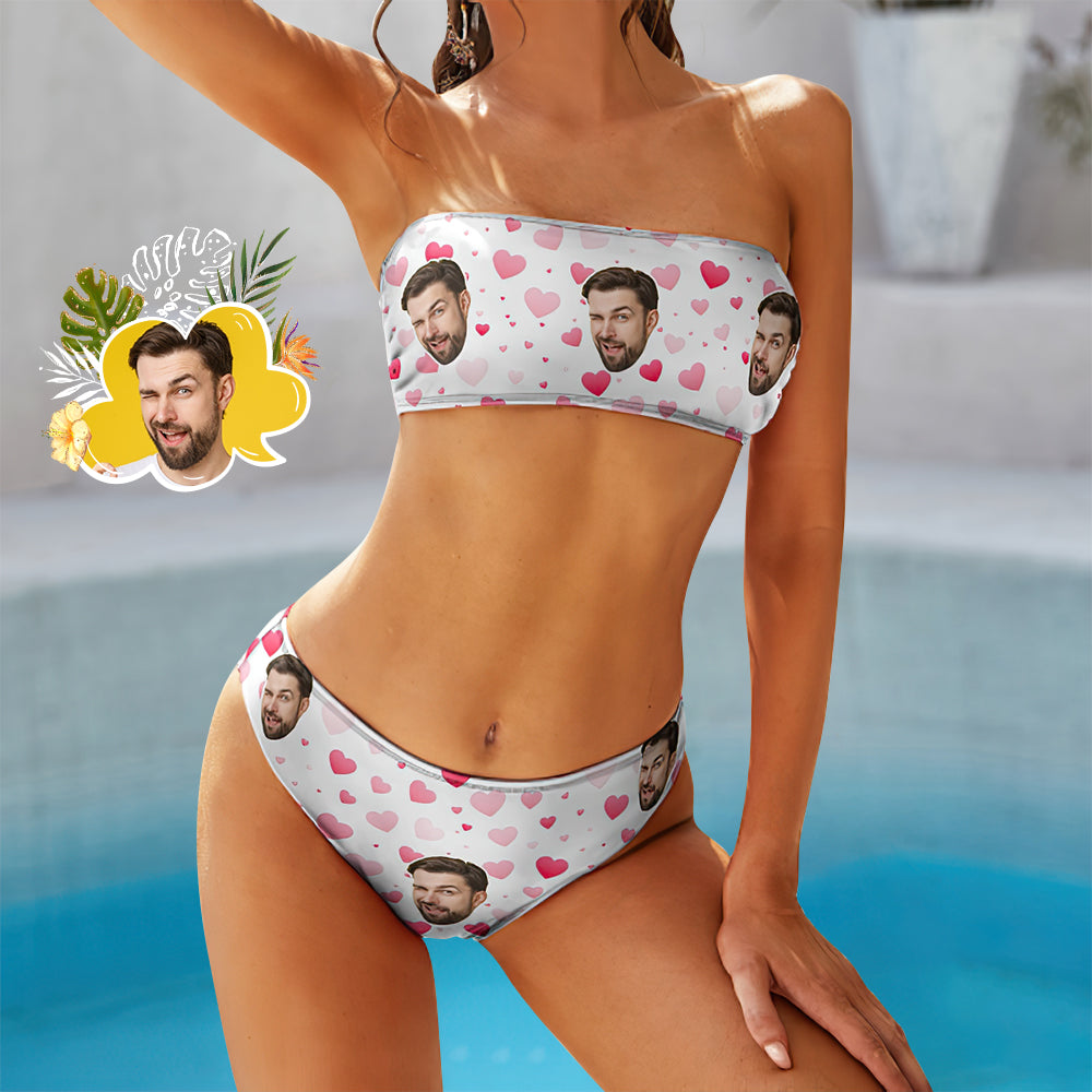 Custom Face Bikini Heart Bandeaukini Gift For Her