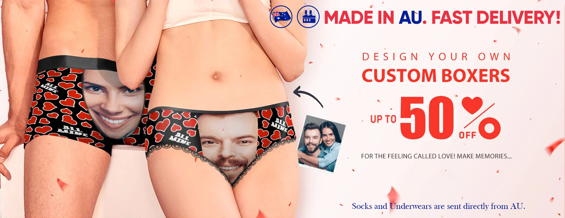 Custom Face Boxer Shorts Love Heart -
