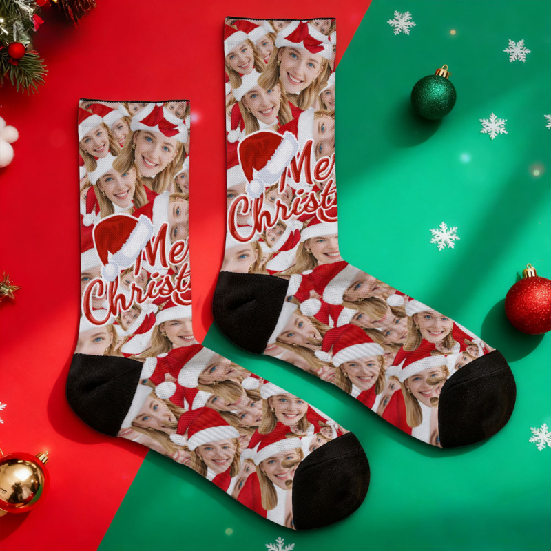 Christmas Socks Custom Face Socks Personalized Funny Hat Custom Design Best Gift Idea for Xmas