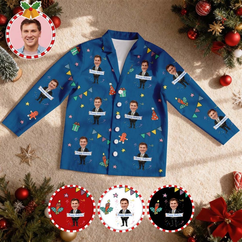 Custom Birthday Face Long Sleeve Pajamas with Face Personalized Photo Pajamas Gift