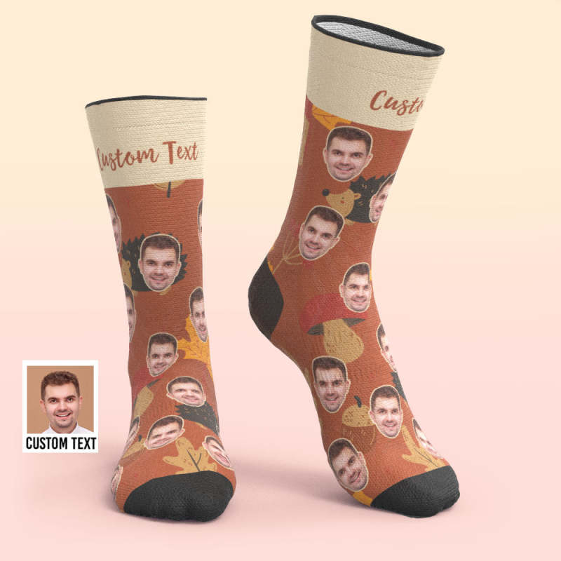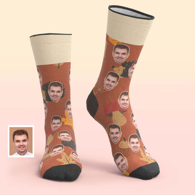 Custom Breathable Face Socks Forest Hedgehog Socks