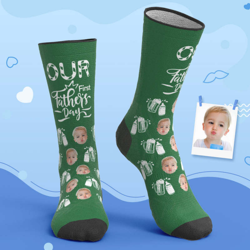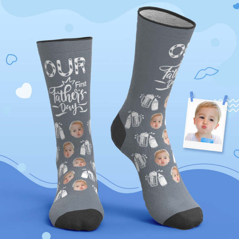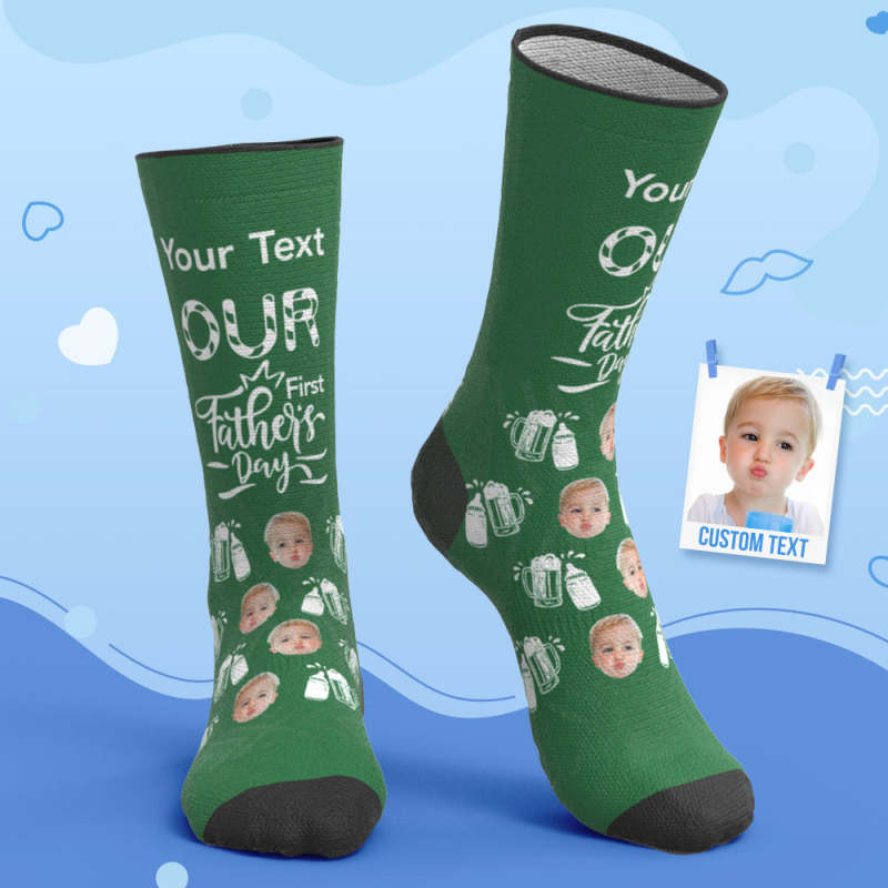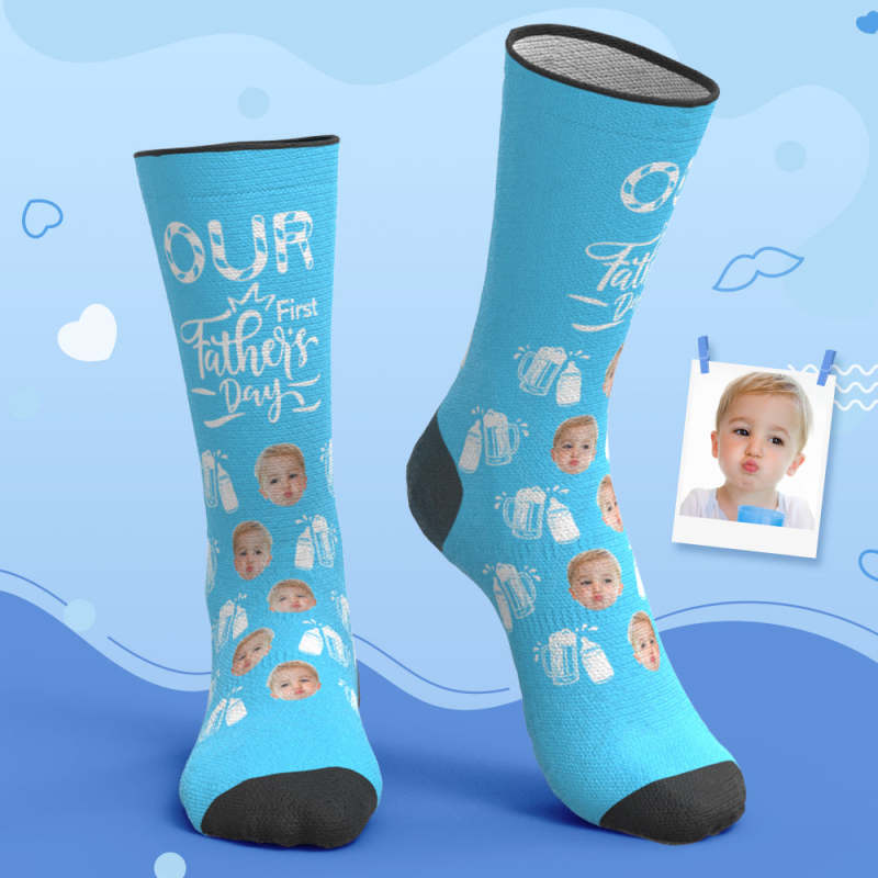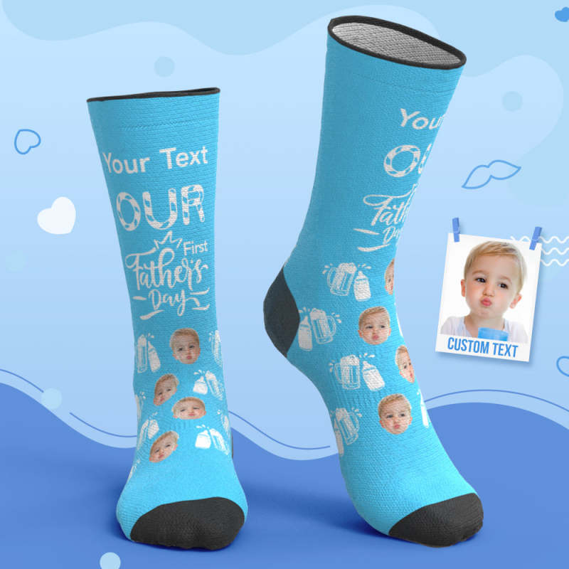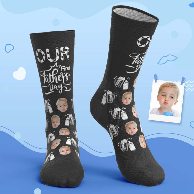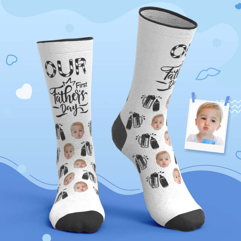Custom Breathable Face Socks Wine Glass Bottle Socks Our First Father's Day Gifts