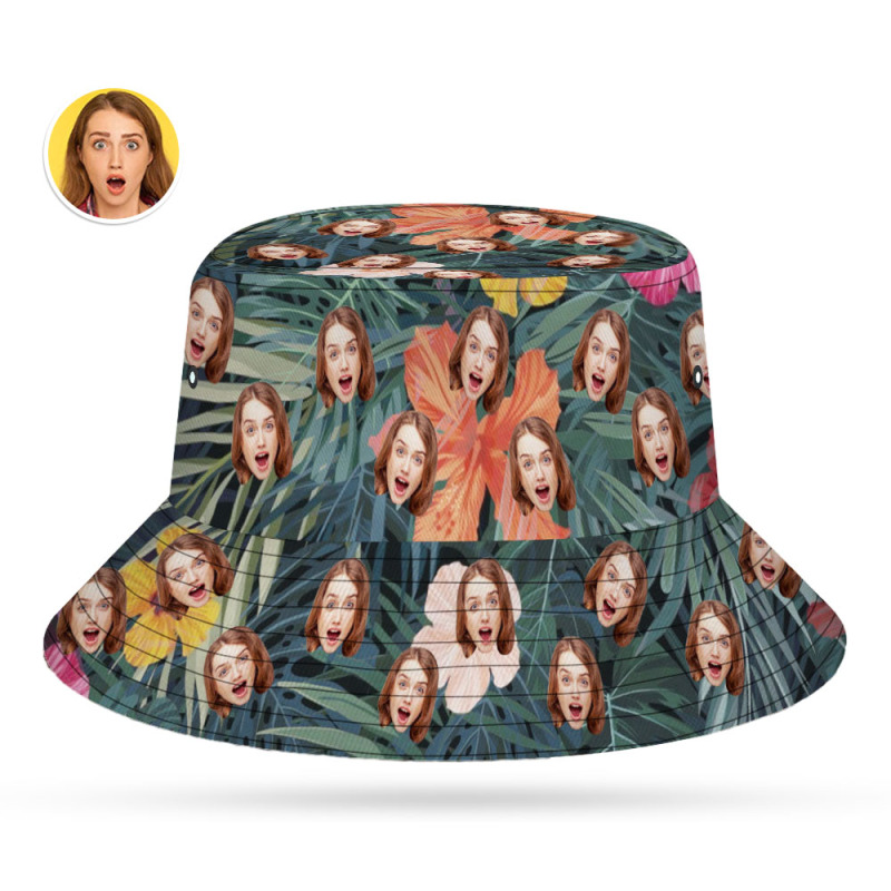 Custom Bucket Hat Unisex Face Bucket Hat Personalize Wide Brim Outdoor Summer Cap Hiking Beach Sports Hats Hawaiian Style Gift for Lover