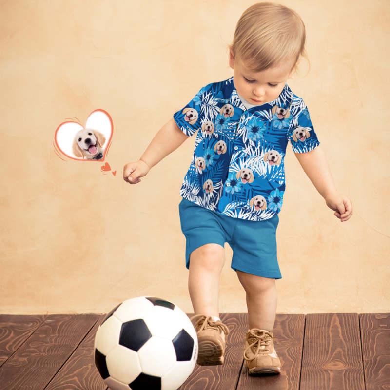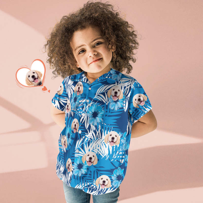 Custom Dog Face Hawaiian Shirt Kid's All Over Print Blue Short Sleeve Shirt