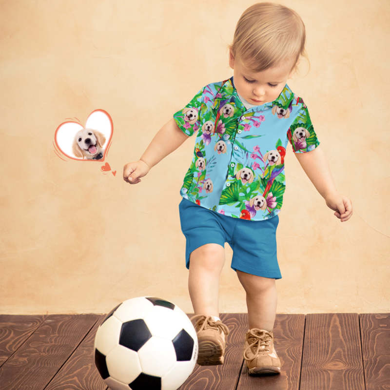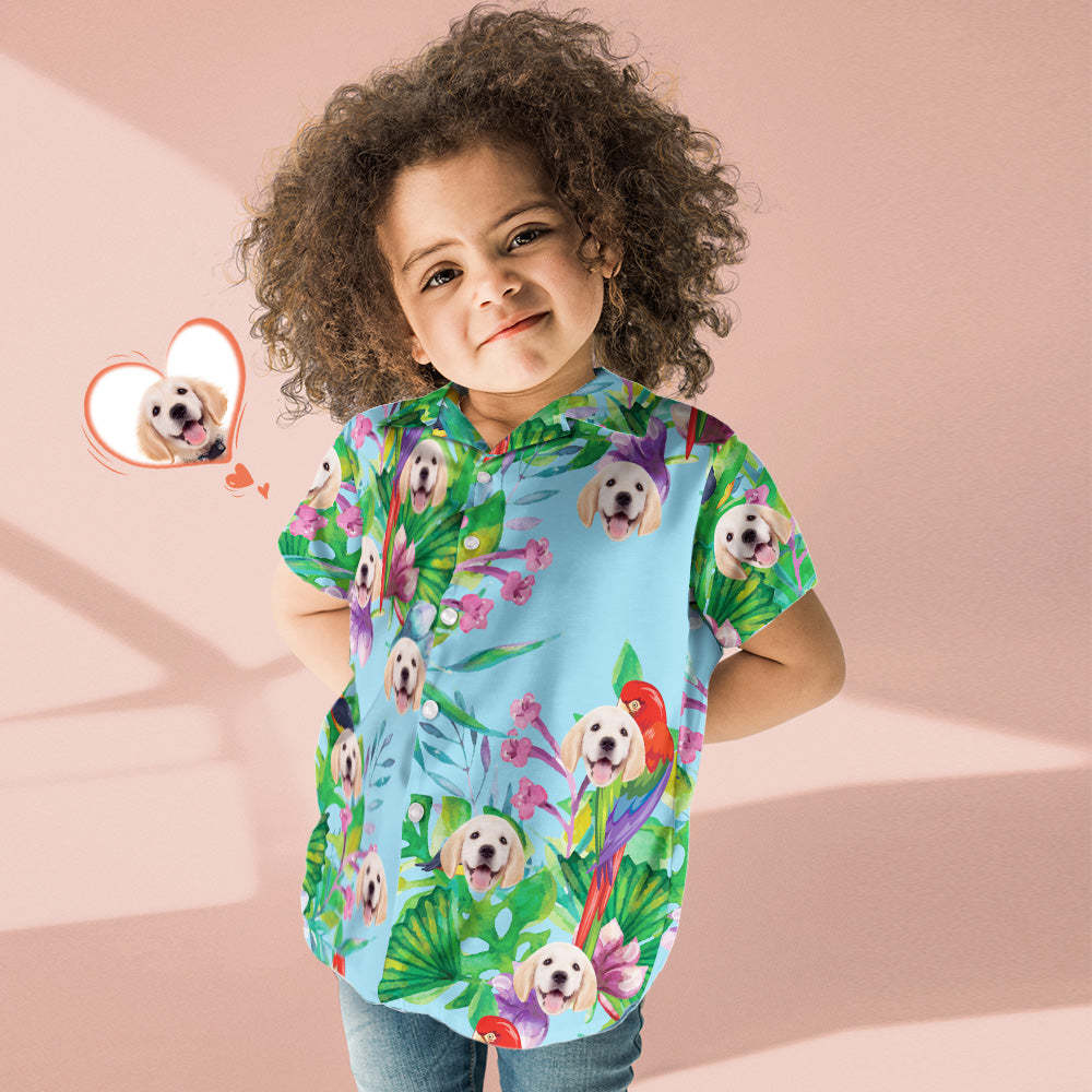 Custom Dog Face Shirt Kid's Hawaiian Shirt Colorful Parrot