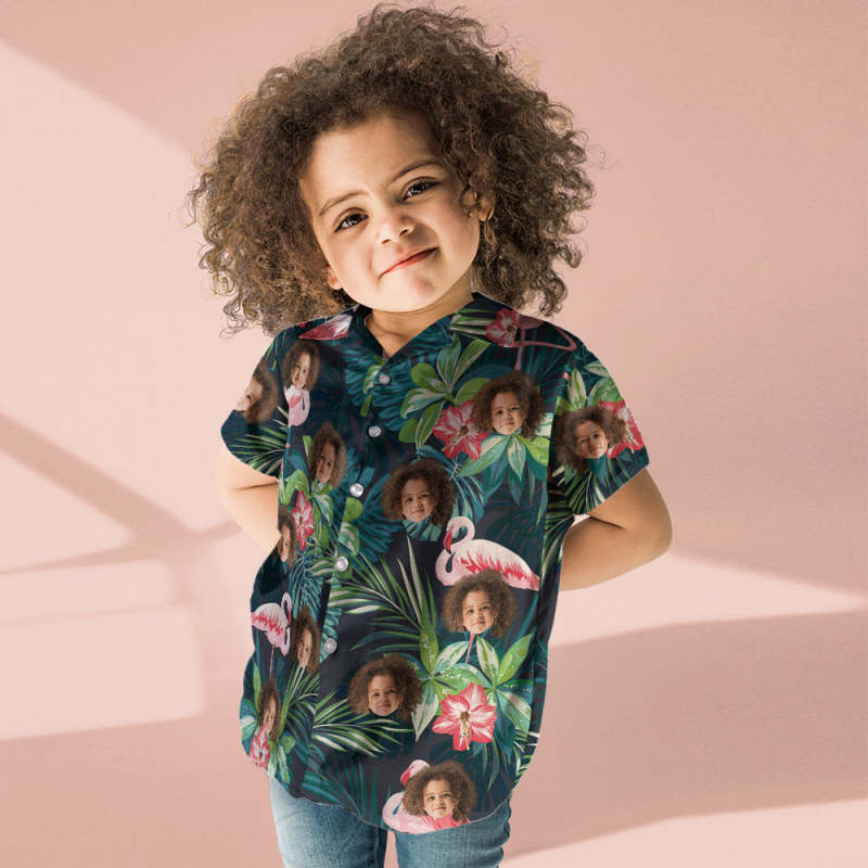 Custom Dog Face Shirt Kid's Hawaiian Shirt Flamingo Flower