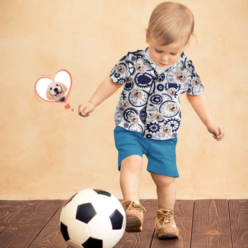 Custom Dog Face Shirt Women's and Kids Hawaiian Shirts Short Sleeve Shirt Mother's Day Gift - Clock