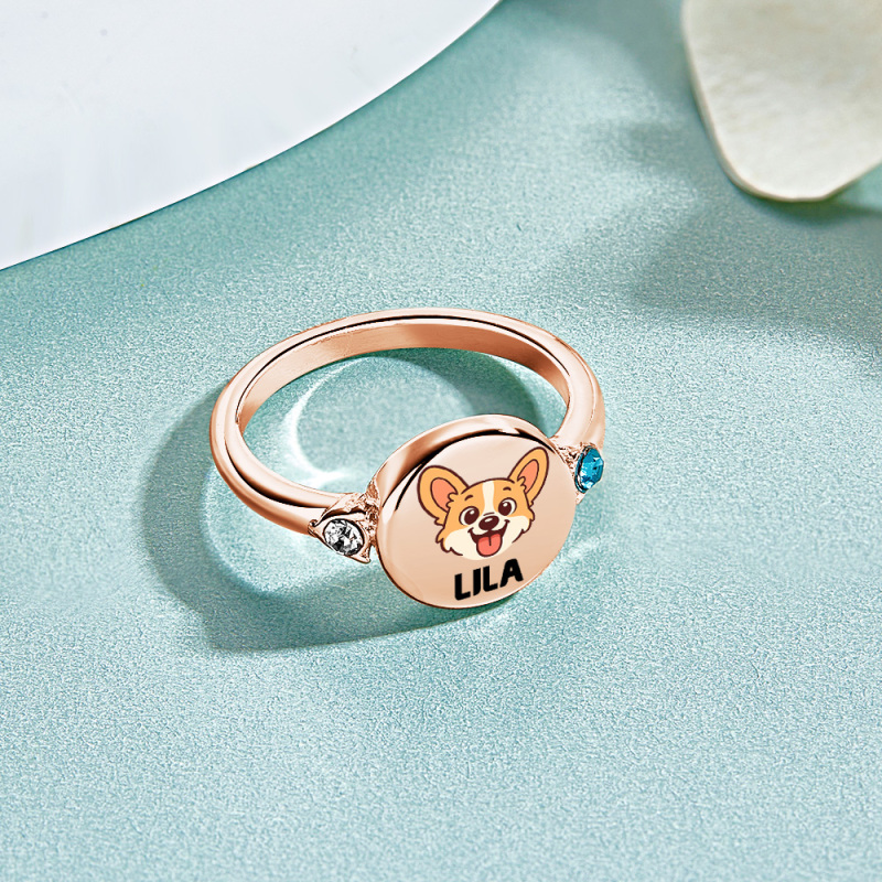 Custom Dog or Cat Ring with Birthstone, Custom Pet Portrait Photo Ring, Dog Cat Memorial Jewelry Gift For Pet Lover, Pet Remembrance, Gift for Her