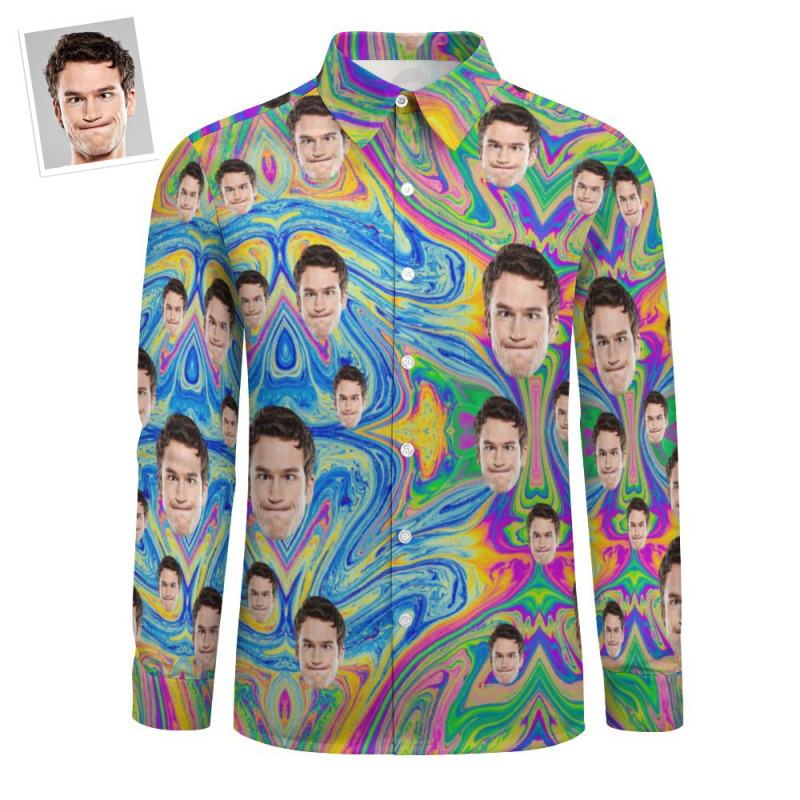 Custom Face All Over Print Large Long Sleeve Shirt Colorful Abstract Paint Flow