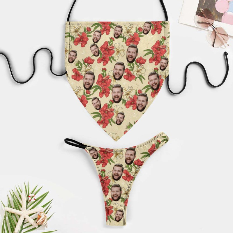 Custom Face Bikini Hawaiian Style Vintage Flowers Bikini Swimwear