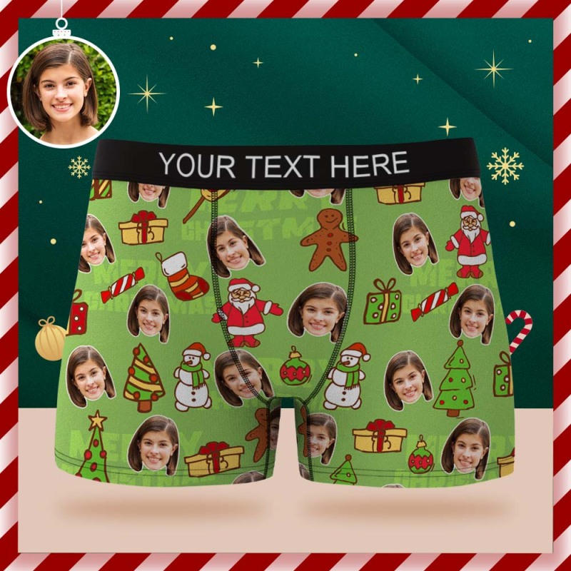 Custom Face Boxer Briefs Personalized Green Underwear Christmas Gift for Him - My Photo Socks AU Custom Face Boxer Briefs Personalized Green Underwear Christmas Gift for Him - My Photo Socks AU