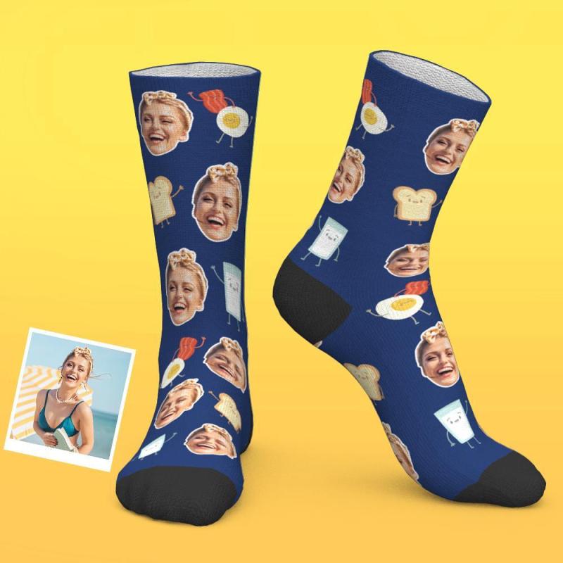 Custom Face Breakfast Food Socks Fried Egg Sandwich Elements