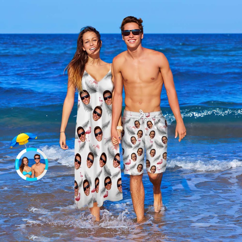 Custom Face Couple Matching Outfits Feather Beach Wear Set