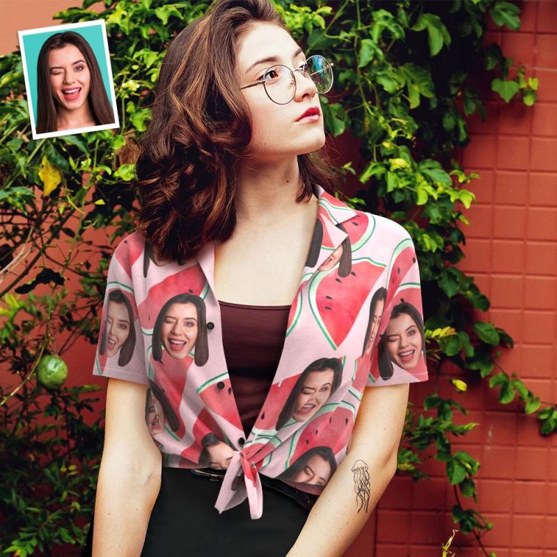 Custom Face Hawaiian Shirt for Women Personalized Women's Photo Hawaiian Shirt Gift for Her - Watermelon