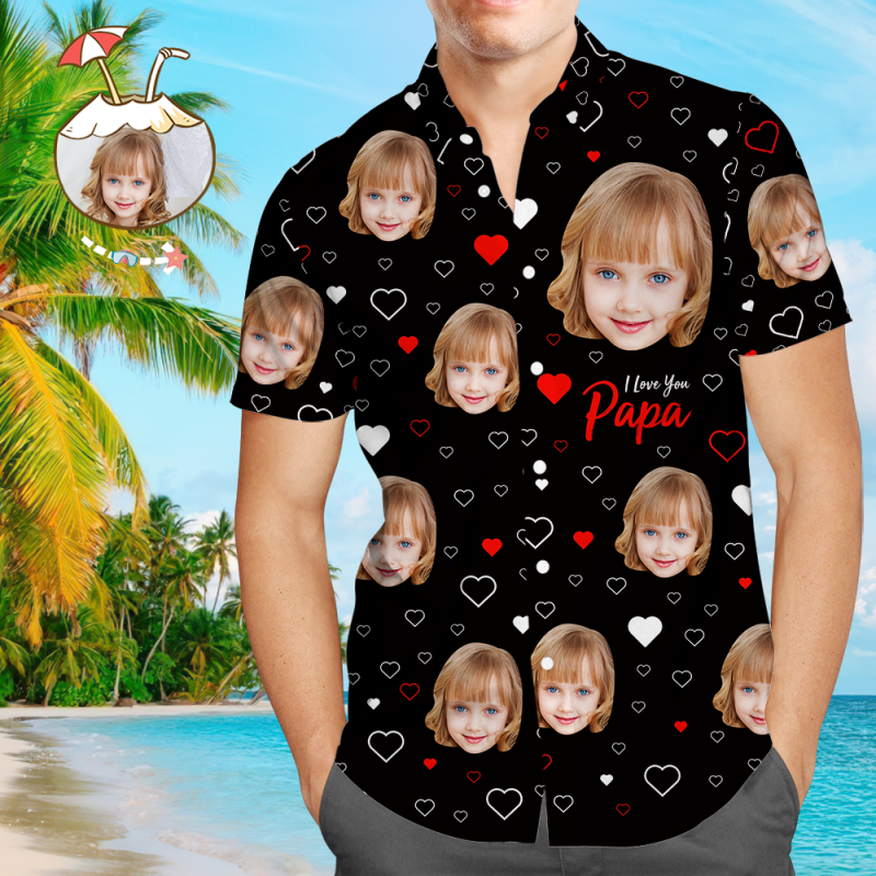 Custom Face Hawaiian Shirt Heart Men's All Over Print I Love You Papa