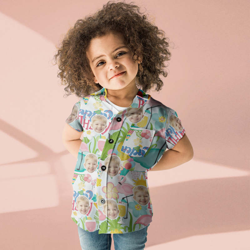 Custom Face Hawaiian Shirt Kid's Short Sleeve Shirt Happy Birthday