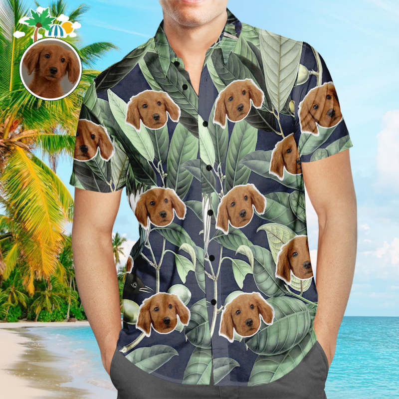 Custom Face Hawaiian Shirt Tropical Green Leaves Men's Popular All Over Print Hawaiian Beach Shirt Holiday Gift - My Photo Socks AU Custom Face Hawaiian Shirt Tropical Green Leaves Men's Popular All Over Print Hawaiian Beach Shirt Holiday Gift - My Photo Socks AU