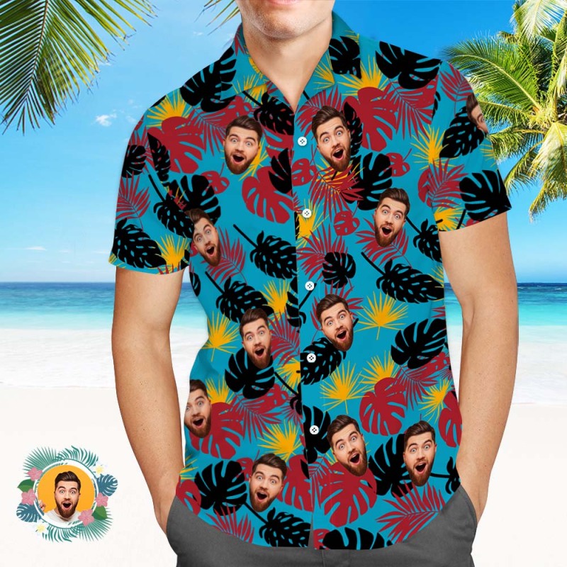 Custom Face Hawaiian Shirts Black And Red Leaves Beach Hawaiian Shirt - MyPhotoSocksAu Custom Face Hawaiian Shirts Black And Red Leaves Beach Hawaiian Shirt - MyPhotoSocksAu