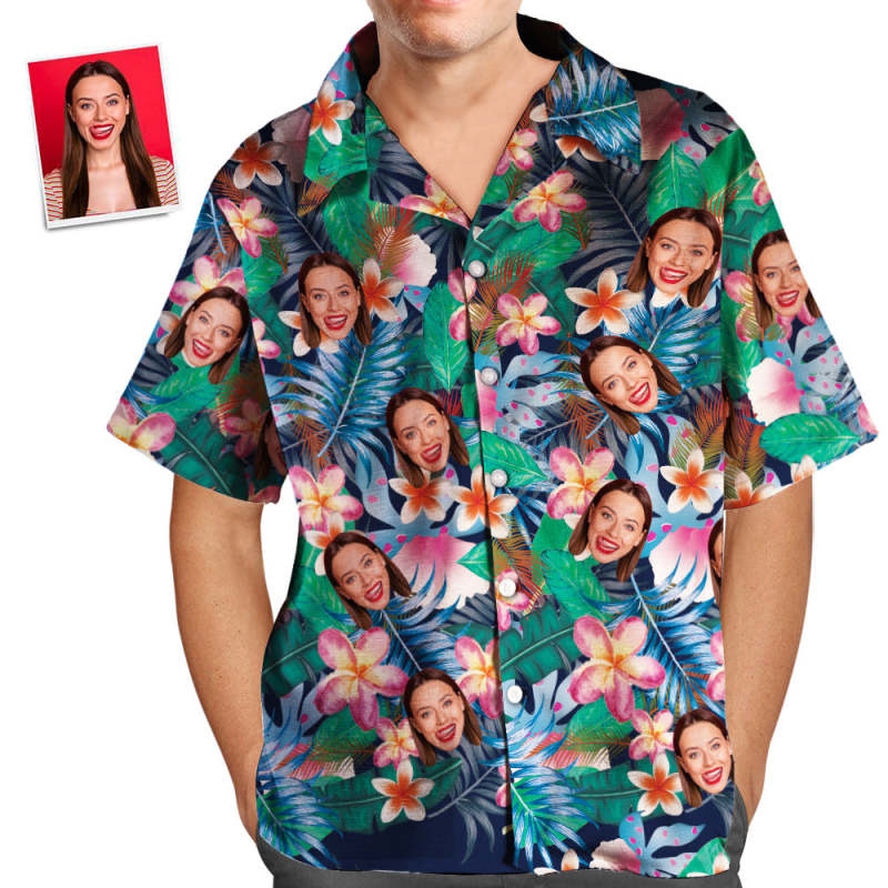Custom Face Hawaiian Style Colorful Flowers Long Dress And Shirt Family Matching