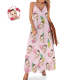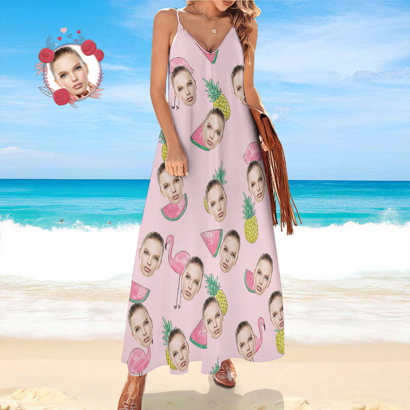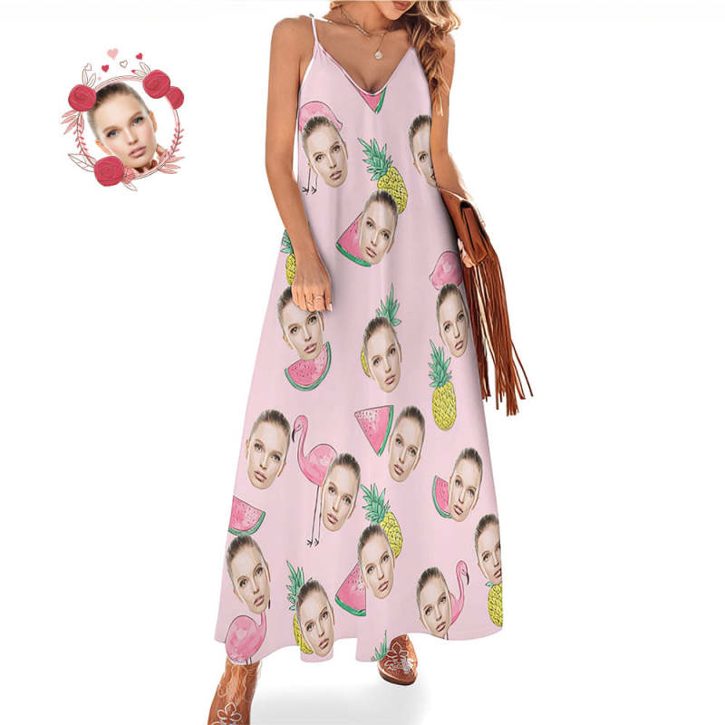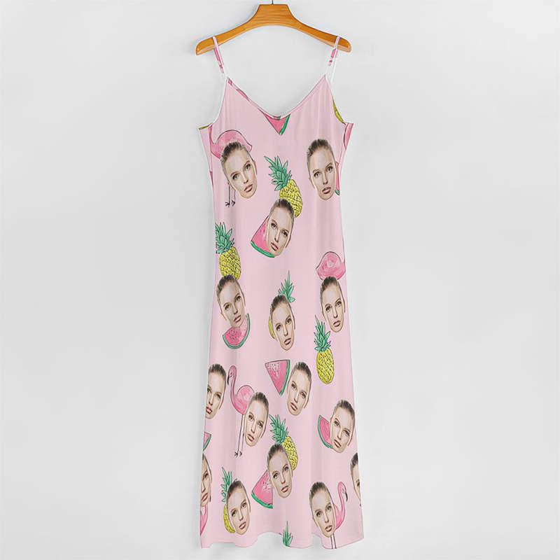 Custom Face Hawaiian Style Long Dress Flamingo Pink Sling Dress