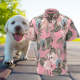 Custom Dog Face Hawaiian Style Pink Flowers Dog and Owner Matching Hawaiian Shirts