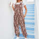 • Features: This jumpsuit, with an elegant round neck design, can perfectly change the curve of the neck. Belly drawstring straps, adjustable waist elastic, casual style, light and breathable.