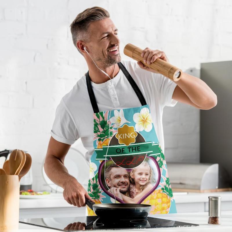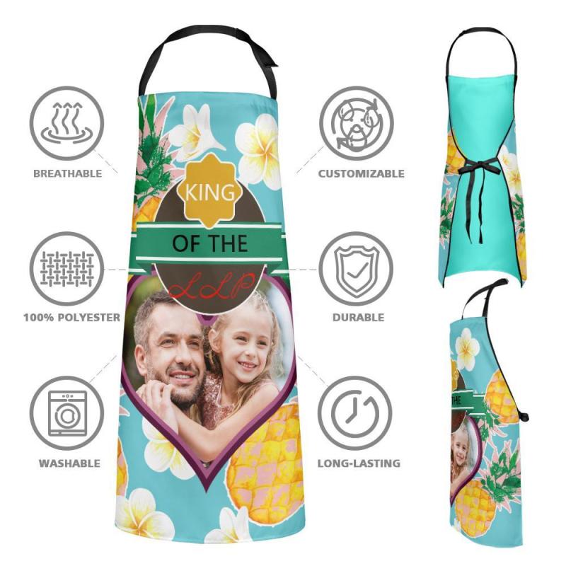 Custom Face Kitchen Apron Whole photo Print Flowers And Pineapple Pattern Apron