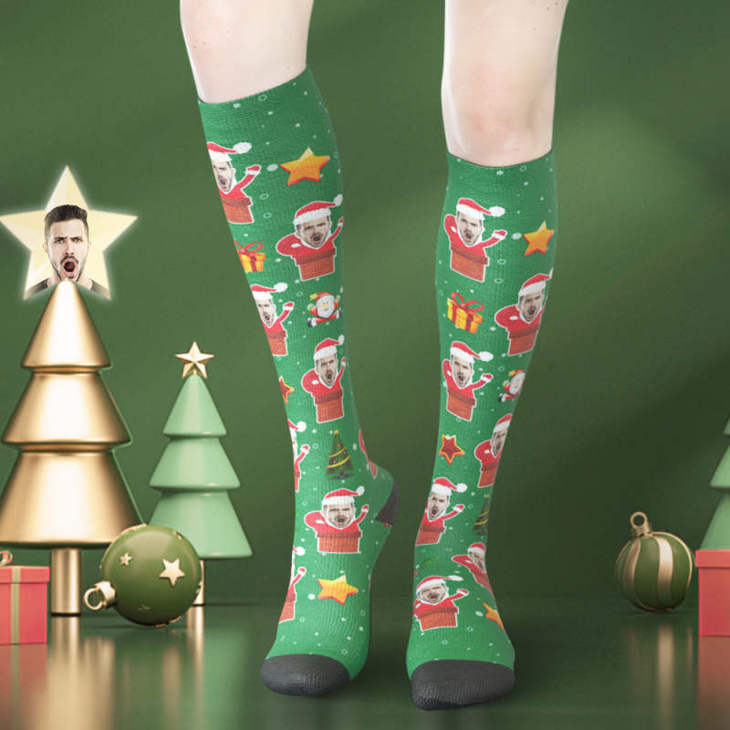 Custom Face Knee High Socks - Santa Stuck In Chimney - My Photo Socks AU Custom Face Knee High Socks - Santa Stuck In Chimney - My Photo Socks AU Custom Face Knee High Socks - Santa Stuck In Chimney - My Photo Socks AU