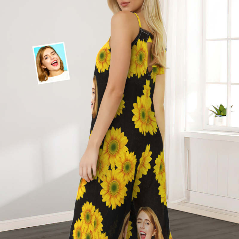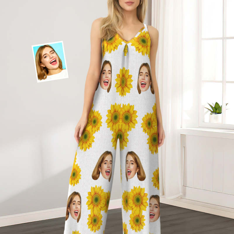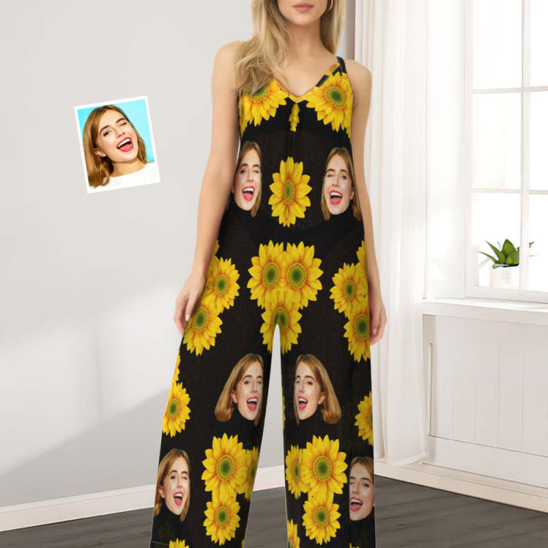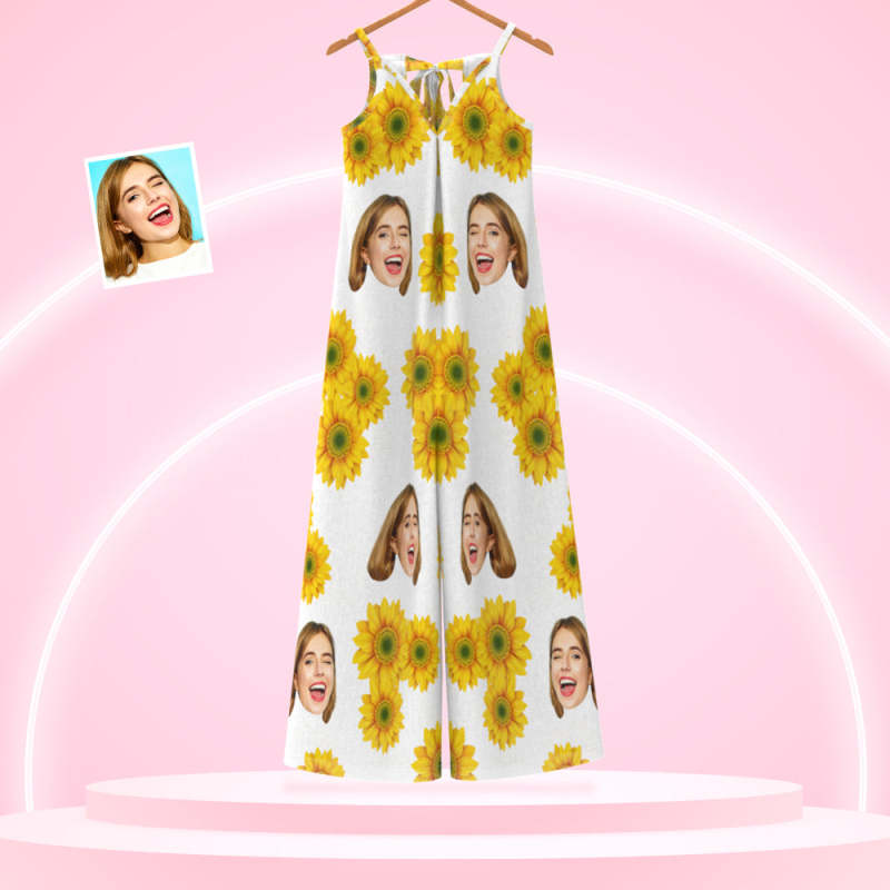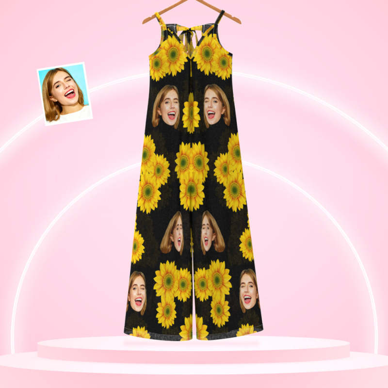 Custom Face Loose Jumpsuit Sunflower Wide Leg Rompers