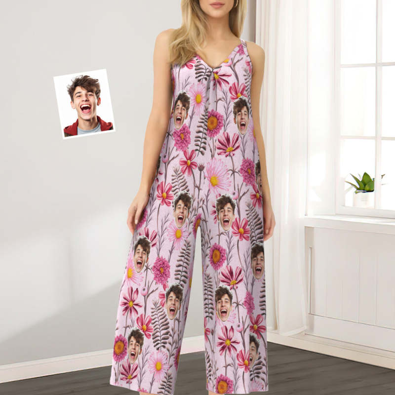 Custom Face Loose Jumpsuit With Wide Leg Pink Flowers Rompers - My Photo Socks AU Custom Face Loose Jumpsuit With Wide Leg Pink Flowers Rompers - My Photo Socks AU Custom Face Loose Jumpsuit With Wide Leg Pink Flowers Rompers - My Photo Socks AU