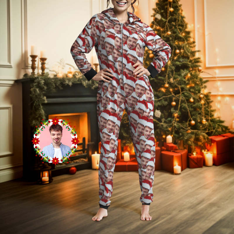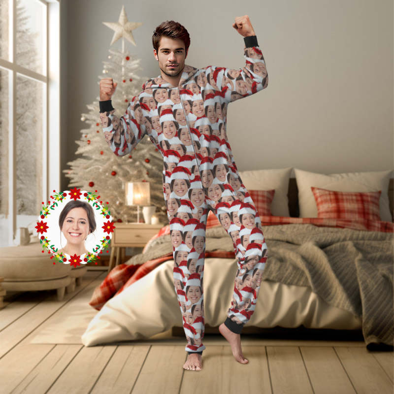 Custom Face Mash Onesies Christmas Pajamas One-Piece Sleepwear Christmas Gift