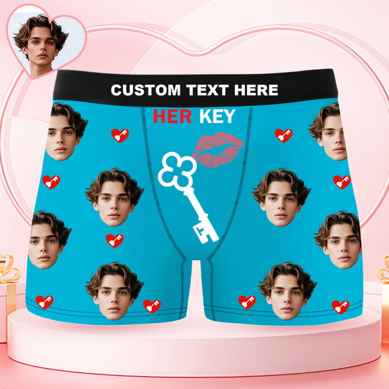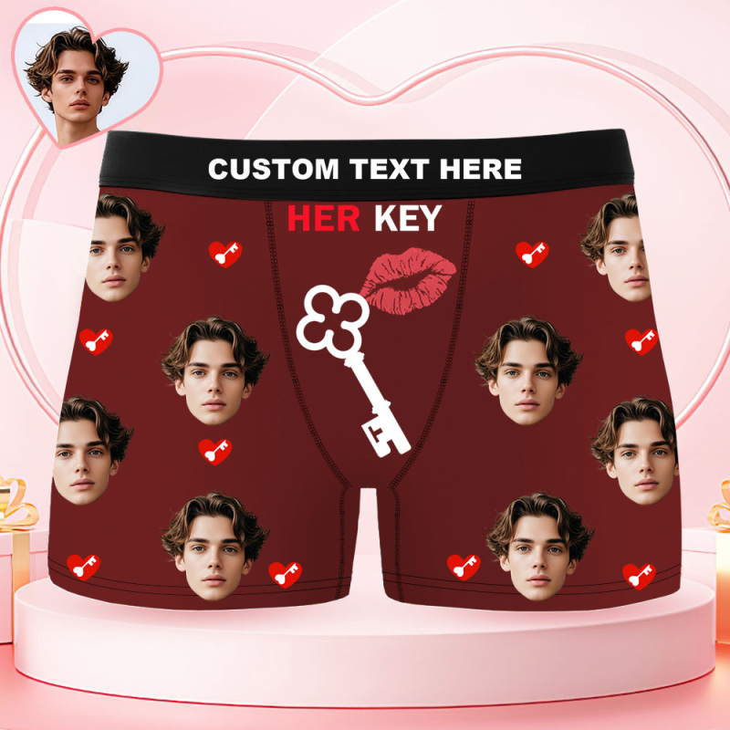 Custom Face Men's Boxer Underwear HER KEY Red Lips And Key Boxer Gift Personalized Photo Funny Men's Boxer Briefs
