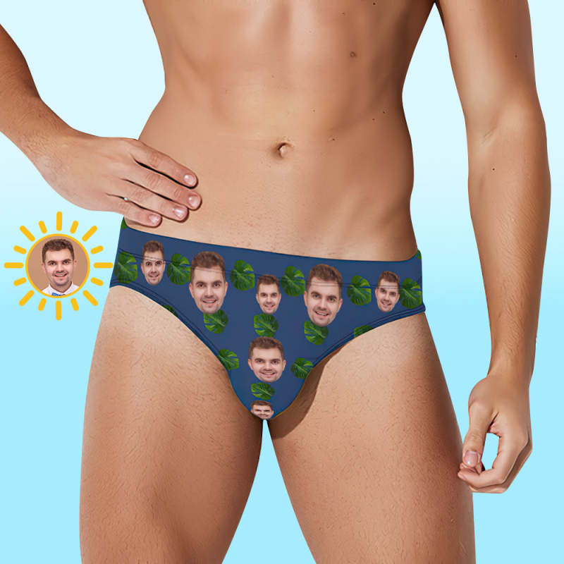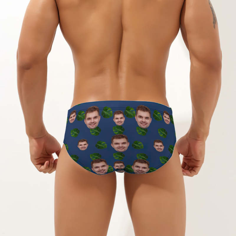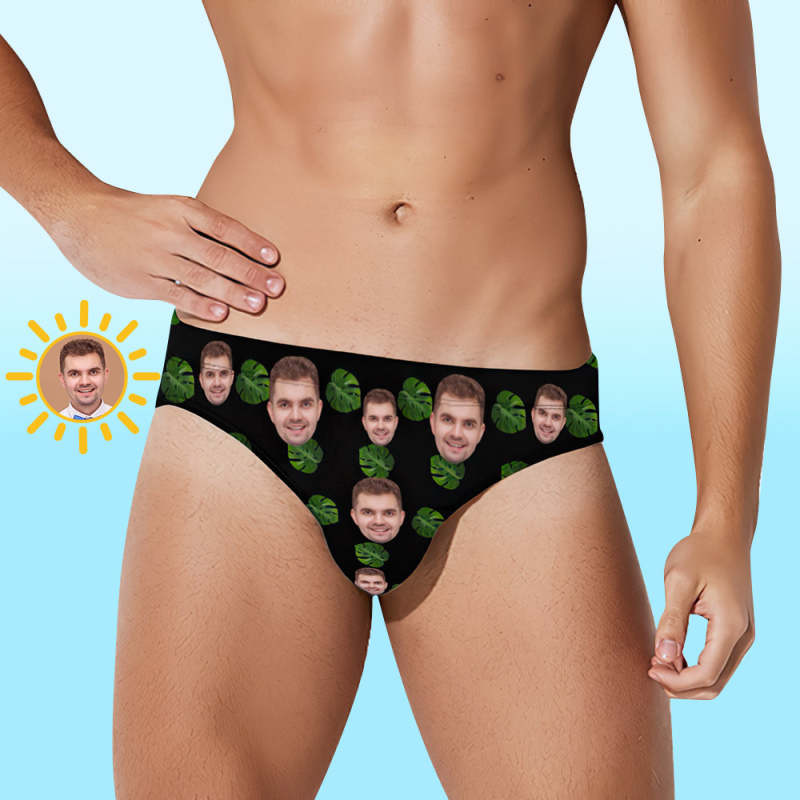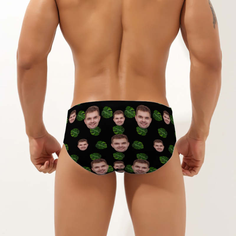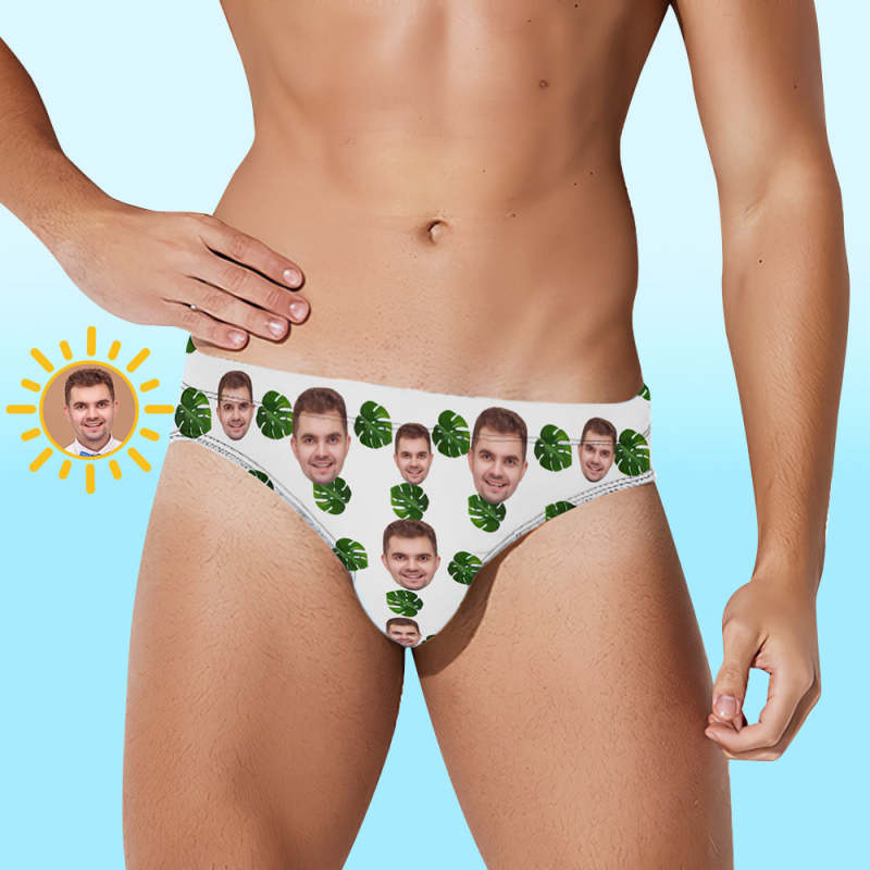 Custom Face Men's Swimming Trunks Tropical Leaves Swim Briefs